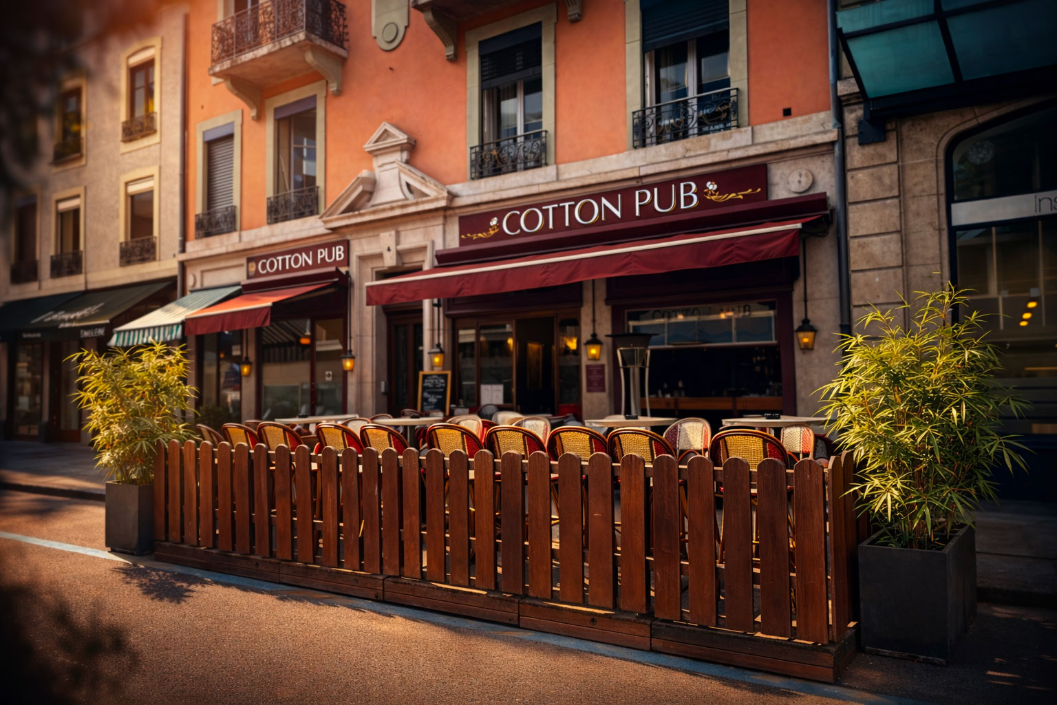 Le Cotton Pub est un bar à Genève centre-ville où l’on se retrouve du lundi au samedi pour partager un moment convivial dans une atmosphère élégante et vivante. Le comptoir en bois, les lumières tamisées, la musique qui monte progressivement…